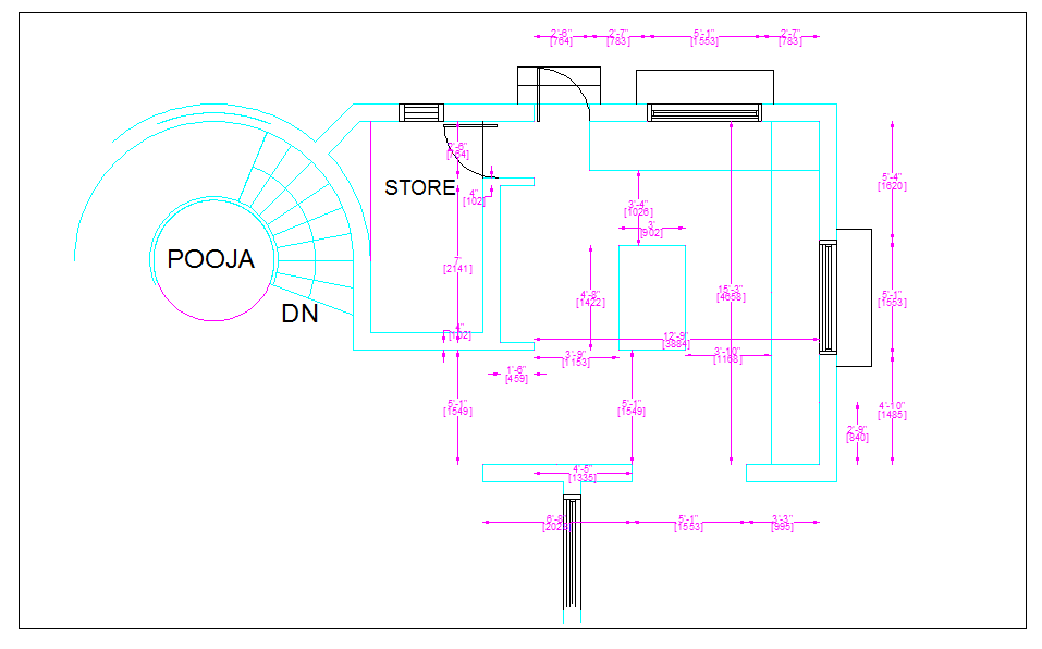 Kitchen plan layout dwg file, Kitchen plan layout with top view of platform of kitchen with detail dimension, pooja room view, store room view with dimension detail
