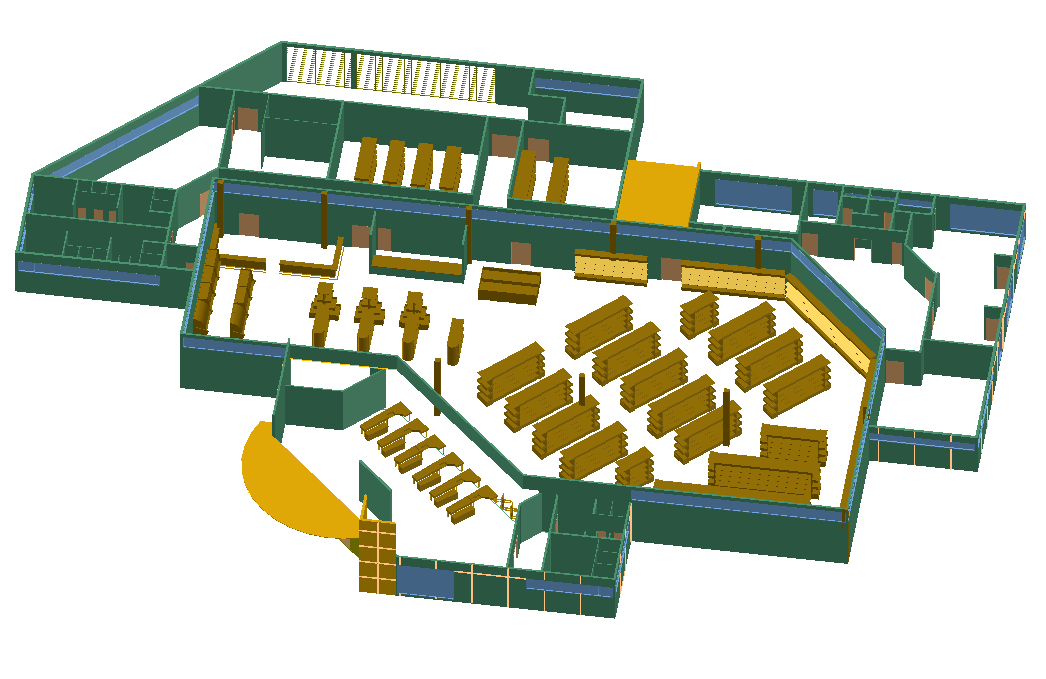 3d Library project dwg file. the architecture 3d model of the library with furniture detail, structure detail and elevation design of Library project.