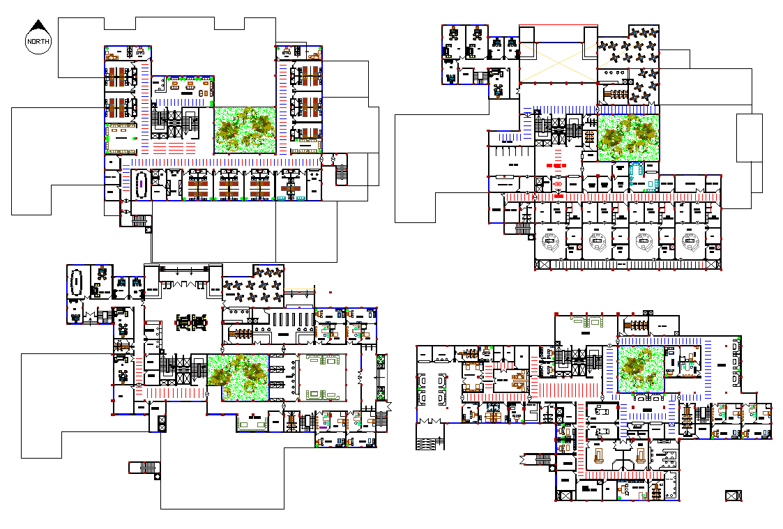the architecture layout plan of all floor level includes a cafeteria, admit room, operation theater, landscaping design and much more detailing in cad file.
