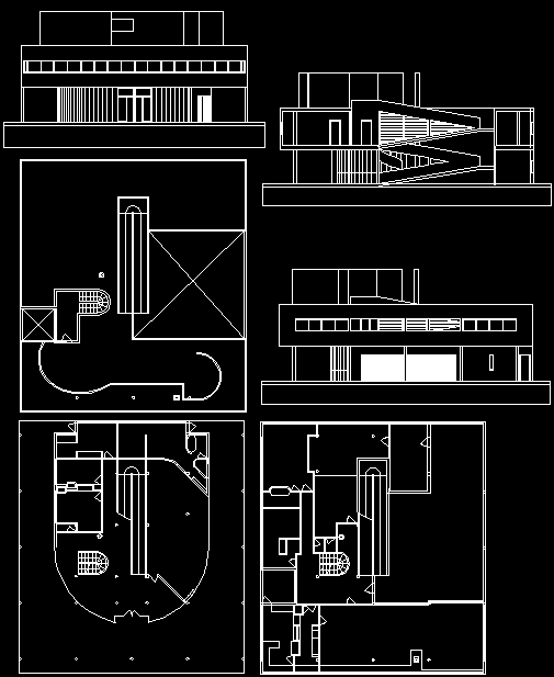 This CAD DWG drawing showcases a small modern bungalow design that includes the complete floor plan along with front, back, and side elevations. The layout provides a clear architectural understanding of how each section of the bungalow is structured. The floor plan includes living spaces, bedrooms, and kitchen areas, all designed efficiently for compact yet elegant living. The elevations are detailed with dimensions, helping architects and students analyze the proportions, facade style, and design balance of a small-scale residential project.