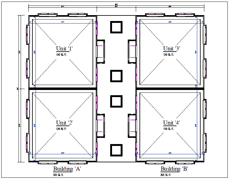 Building plan layout detail and Construction carpet area detail dwg file, Building plan layout detail and Construction carpet area detail of unit 1,2,3 & 4 building