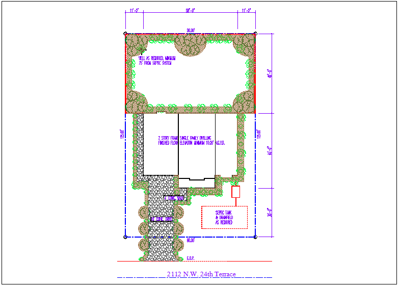 Terrace plan view of house detail dwg file, Terrace plan view of house detail with dimensions detail, concrete walk way plan view, septic tank system etc