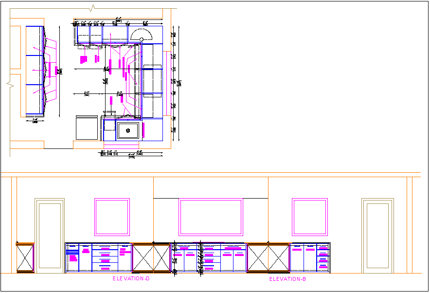Kitchen plan layout dwg file, Kitchen plan layout with top view of platform of kitchen with detail dimension, wash area view, store room view with dimension detail