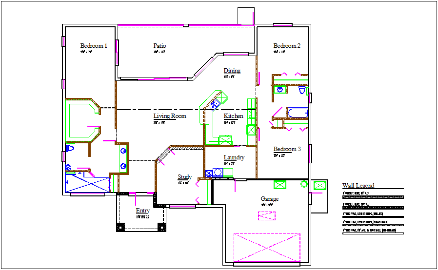 House plan view with wall legend dwg file