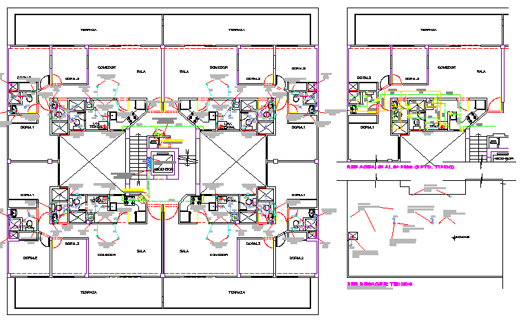 Multi-flooring hotel sanitary installation layout plan dwg file