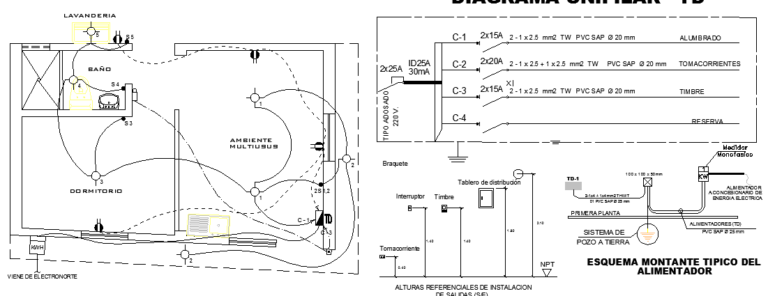 Electric installation of building that includes lighting and outlets, table of loads, circuit recessed by wall or roof, circuit build by flats or wall and much more of electric installation of building project.