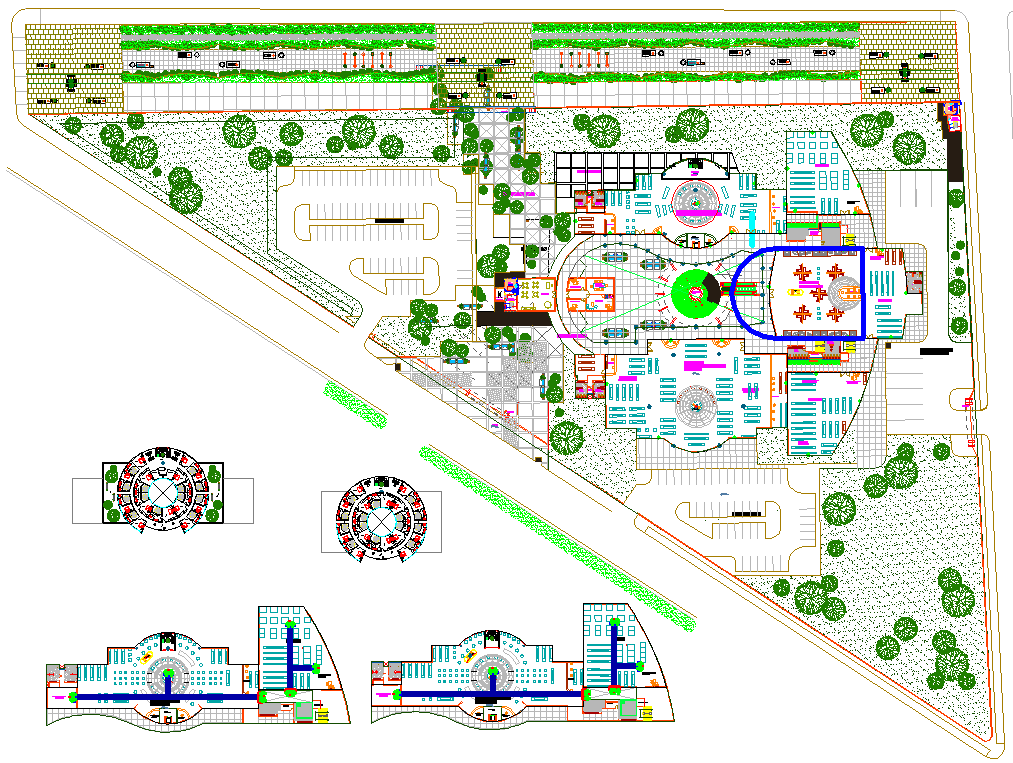 DWG CAD drawing of resort layout plan featuring detailed site arrangement, building placement, pathways, landscaping, and amenities for comprehensive architectural and interior planning. This AutoCAD file allows architects, engineers, and project planners to visualize and design resort spaces accurately, ensuring functional zoning, aesthetic coherence, and efficient integration of all elements within the project scope.