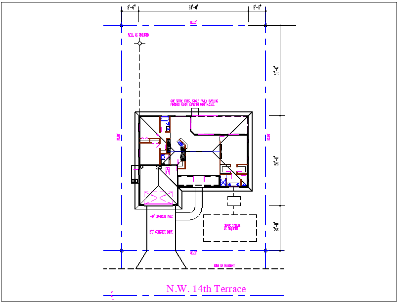 House plan layout dwg file, House plan layout with projection view, septic system plan view