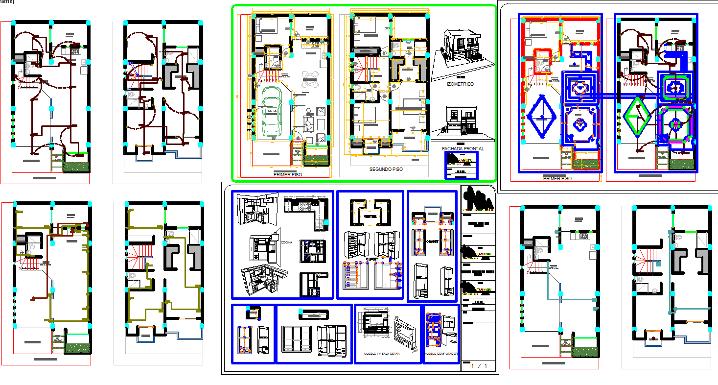 Modern House CAD Layout with Detailed Floor Plans and Elevations