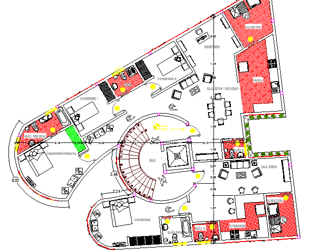 Residential housing building structural layout plan that includes main entry door, family hall, living room, kitchen, dining area, laundry area, bedroom, master bedroom, passage, bathroom and toilets with bath tub, study room and much more of housing structure.