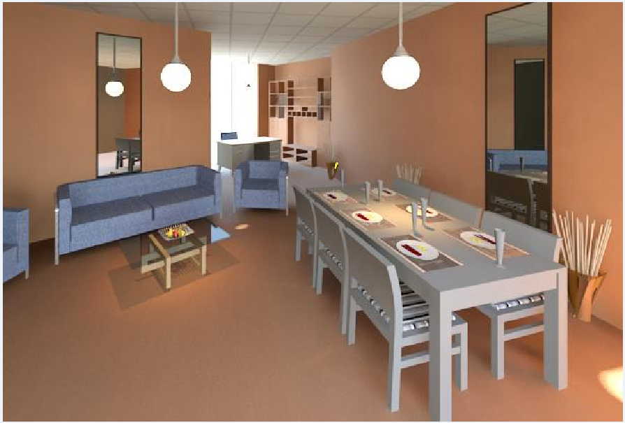Dining room design with interior that includes a detailed view of indoor furniture set up, lighting view, dining table, sofa set, decorative elements and much more of dining room design.