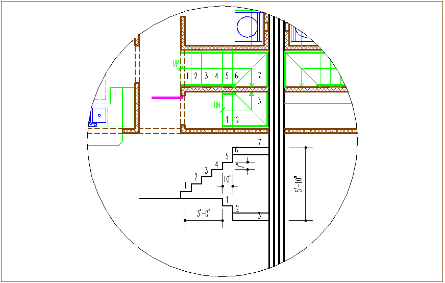 Construction detail of stair dwg file in detail view with stair view with step view and necessary dimension.