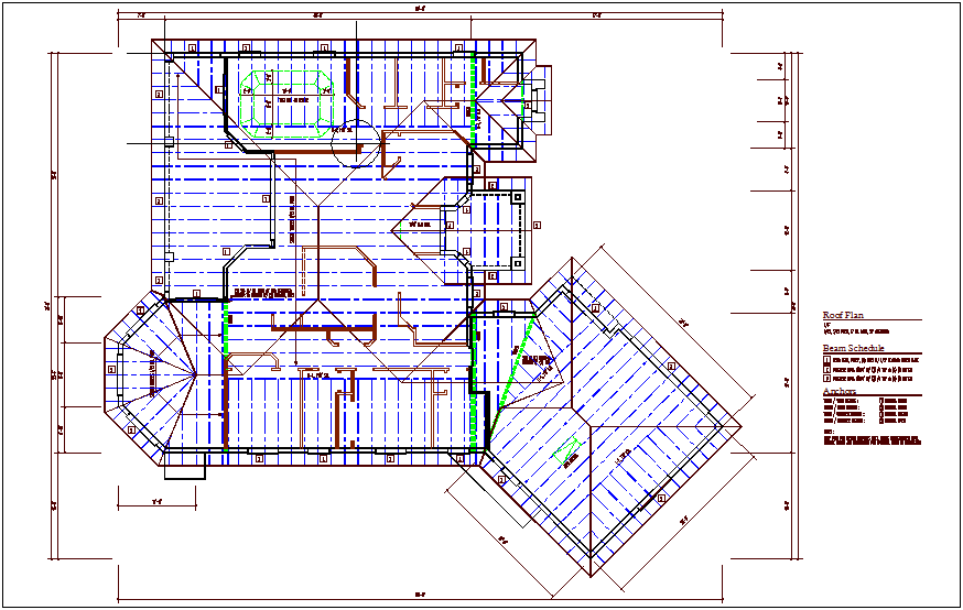 Roof plan with beam schedule dwg file in plan view with wall view and distribution of area and girder,beam and truss view and beam schedule view with necessary dimension.