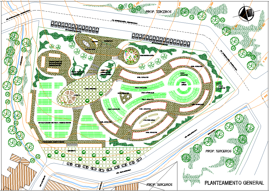 Resort Layout plan of top view dwg file. the architecture layout of a top view along with landscaping design and much more detailing in cad file.