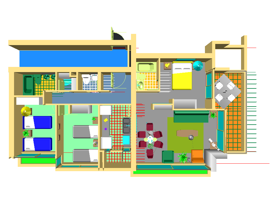 3d House top view dwg file. find here 3d model of modern house design with furniture arrangement in 3d cad format.