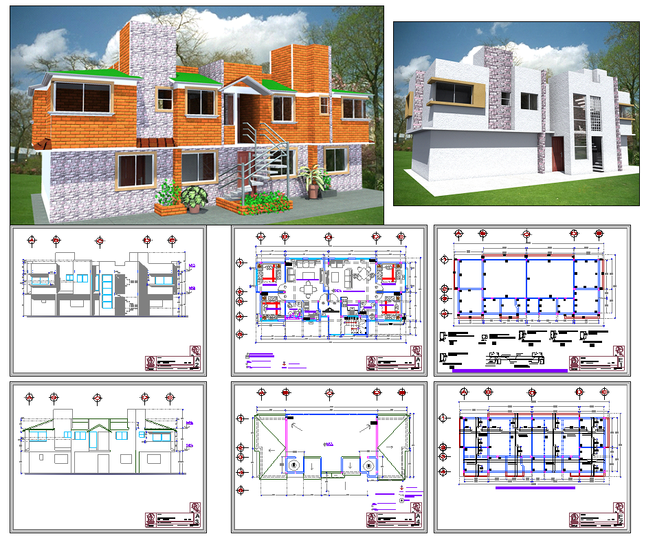 Residence House drawing dwg file the architecture layout plan, foundation plan, elevation design, furniture arrangement, and render image of Residence House project.