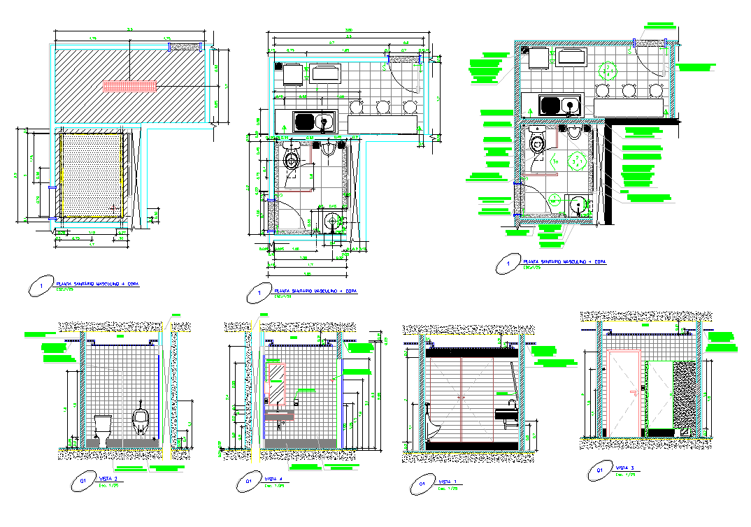 Master Bathroom project dwg file. find here layout plan, section plan, and elevation design of master bathroom also has a sanitary ware installation plan in cad file.