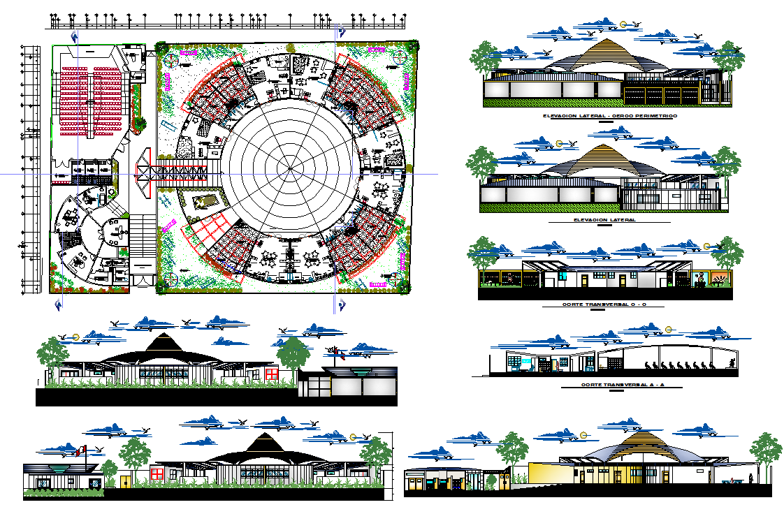 This Modern School Building Design and Layout CAD Drawing presents a comprehensive architectural plan suitable for educational infrastructure development. The AutoCAD DWG file features accurately scaled classrooms, staff rooms, laboratories, and administrative offices. The design includes clear demarcations of entry points, corridor spacing, and restroom placements, ensuring smooth circulation and functional zoning. The ground floor and upper-level layouts are drafted with detailed dimensions, providing clarity for on-site implementation. Elevation and sectional views are also added to highlight façade design, window alignment, and roof height.