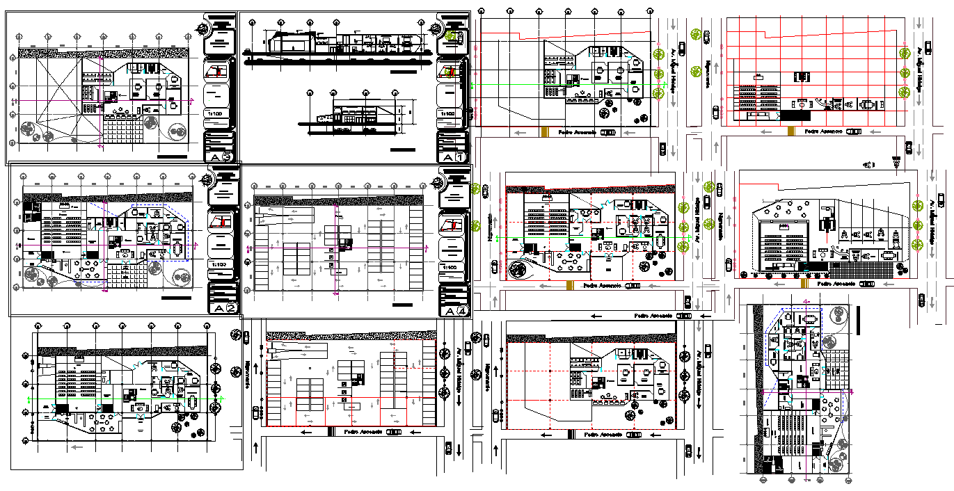 This Modern School and Office Building Design CAD Drawing presents a detailed architectural layout combining educational and corporate spaces in one plan. The AutoCAD DWG file includes floor plans with room divisions, corridor alignments, and staircase positioning for efficient movement. The design integrates classrooms, staff offices, meeting areas, and conference halls, ensuring a functional balance between academic and administrative spaces. The elevations and sectional drawings highlight the façade design, column placement, and wall dimensions with precise measurements for execution accuracy.
