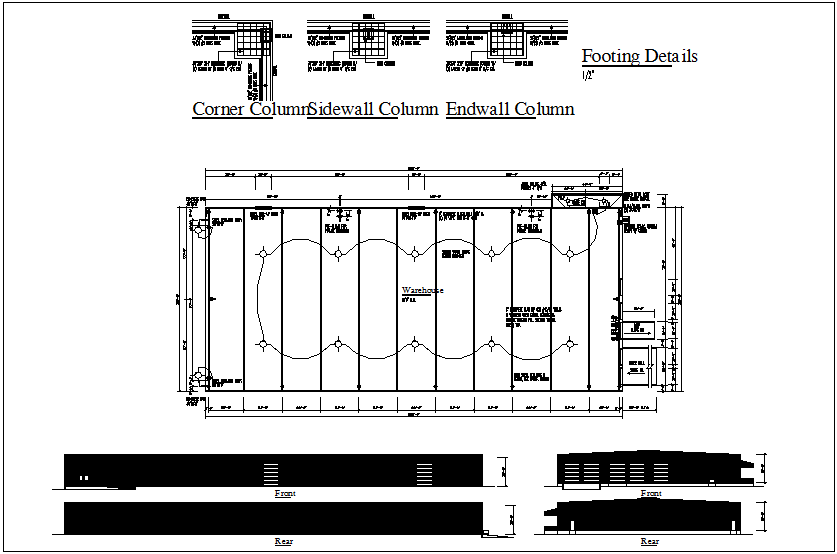 Column detail with sodium vapor ceiling lamp mounting view dwg file in detail view with corner,side wall and end wall column view and plan with wall and column view with sodium vapor ceiling lamp mounting view.