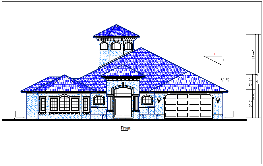 Elevation view of house detail dwg file, Elevation view of house detail with elevated height detail,dimensions detail, elevated door and window view