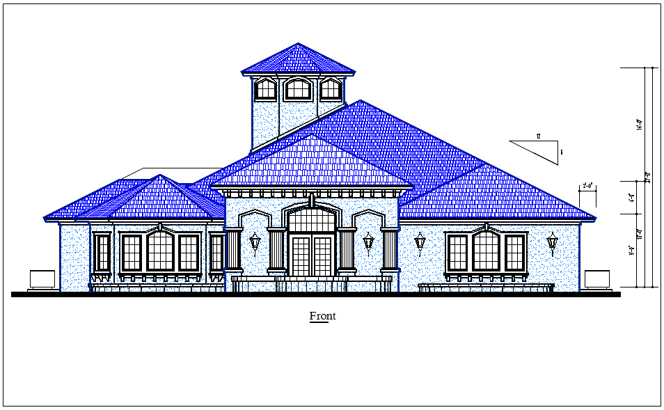 Elevation view of house detail dwg file, Elevation view of house detail with elevated height detail, elevated door and window view