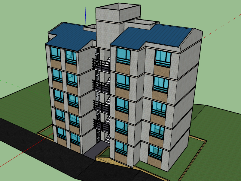 3d design of multi-flooring apartment building dwg file