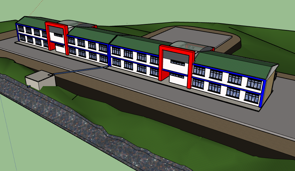 3d design of two flooring school architecture project that includes a detailed view of floors, main entry door, balcony, staircase view, doors and windows view and much more of school project.