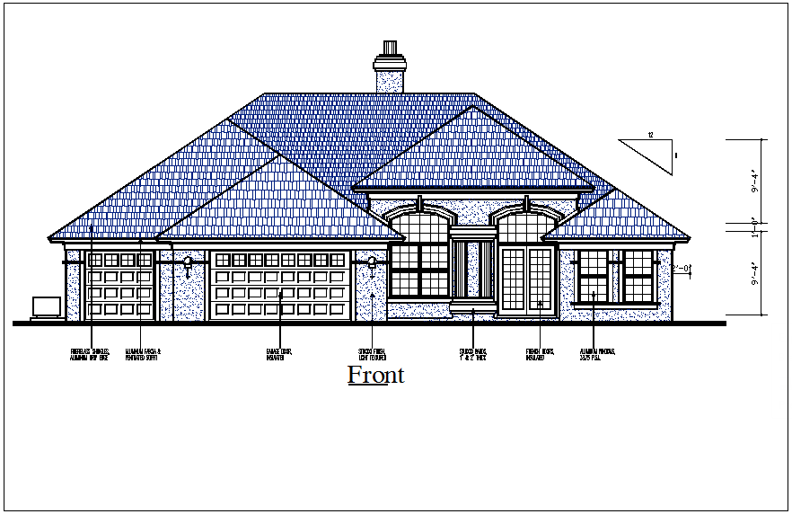 Elevation view detail of house dwg file, Elevation view detail of house with height measurement, door & window and garage door elevated view and specification detail etc