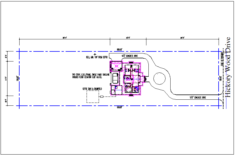 Site plan view of house structure detail dwg file, Site plan view of house structure detail with design plan layout plan, septic system, concrete path