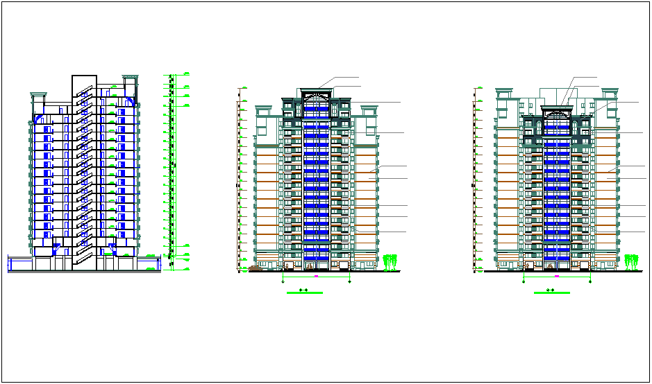 Apartment elevation with floor level dwg file in elevation with main entrance with step