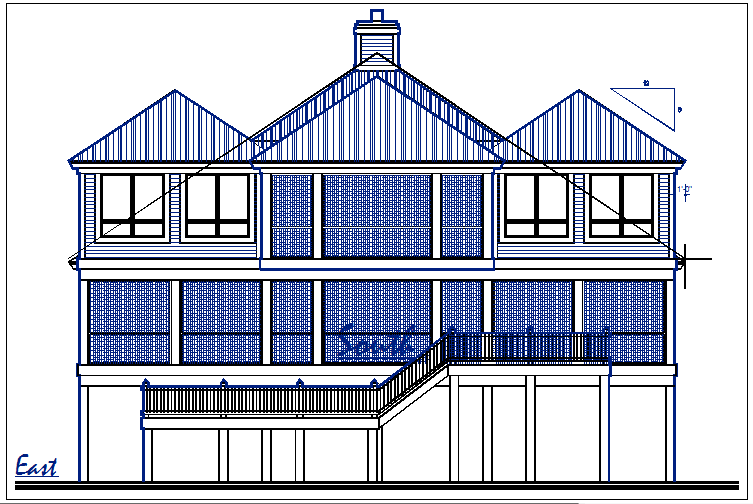 Bungalow plan Front elevation view of bungalow dwg file, Front elevation view of bungalow with elevated height measurement, garage door, door & window elevation view
