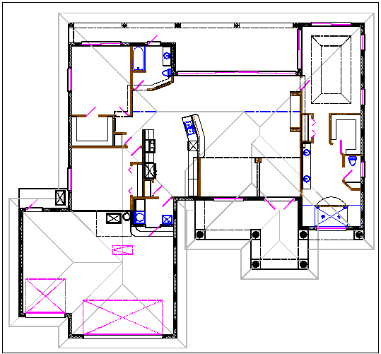 Bungalow plan view details dwg file, Bungalow plan view details with dimension details, beam details in the bungalow, hidden line plumbing line in bungalow