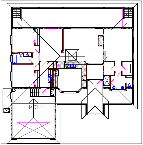 Bungalow plan view details dwg file, Bungalow plan view details with dimension details, beam details in the bungalow, hidden line plumbing line in bungalow