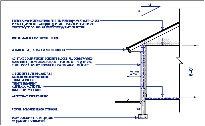 Wall section detail with foundation details