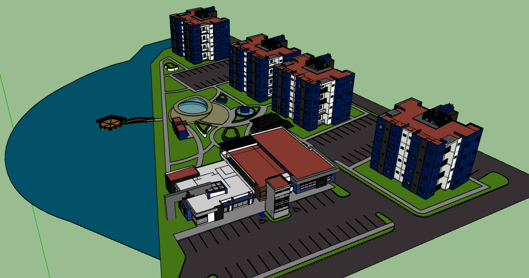 3d design of multi-purpose complex dwg file. 3d design of multi-purpose complex that includes top view with landscaping, swimming pool, garden, floor view, terrace view, doors and windows view, balcony view and much more complex design.
