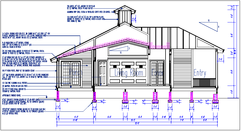 Residential house elevation view details dwg files, Bungalow elevation view details with naming all of door and window, dimension details of top to bottom, etc