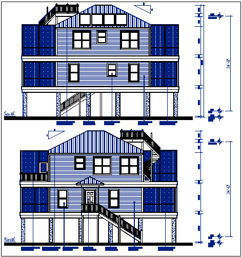 Bungalow elevation view details dwg files, Bungalow elevation view details with naming all of door and window, dimension details of top to bottom, etc