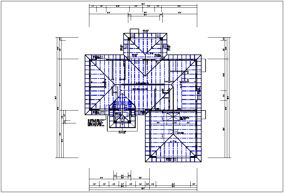 Existing flat roof plan view with foundations of column plan layout detail dwg file