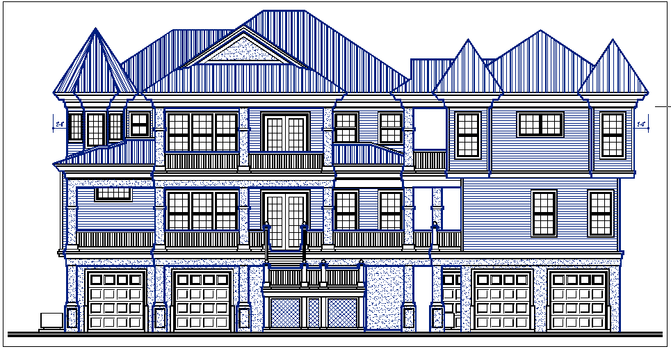 Elevation view of bungalow detail dwg file