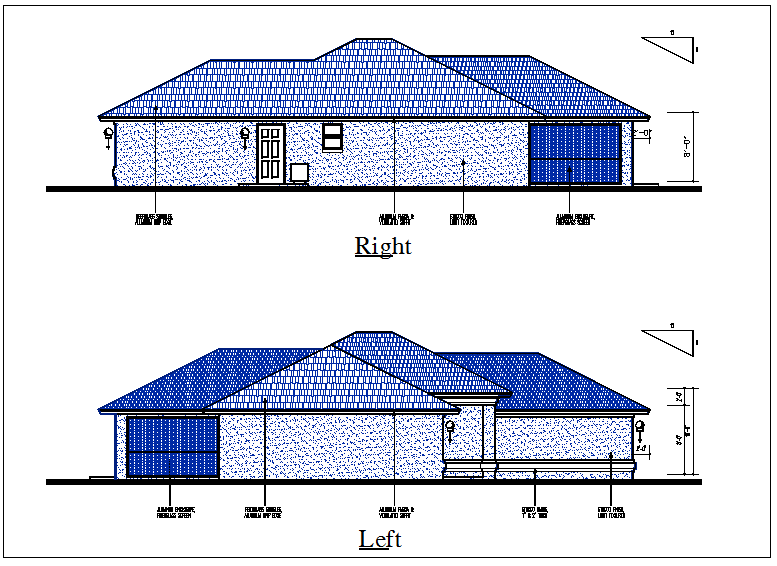 house elevation view detail dwg file, Residential house elevation view detail with specification detail, door window and garage door elevation view detail specification, elevation and side elevation view detail, dimension detail etc