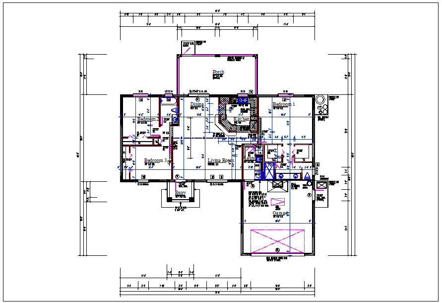Residential luxurious house plan view detail dwg file, Residential luxurious house plan view detail with design plan layout view, with dimension details, bedroom 1,2,3 , dining area, guest area, living room, toilet, wash area, kitchen, storage area, entrance etc