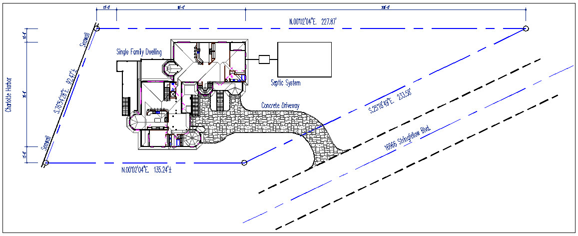 Plot area with dimension details dwg files, Plot area with dimension details, naming septic system, with dimension details, boundary line road inside, etc