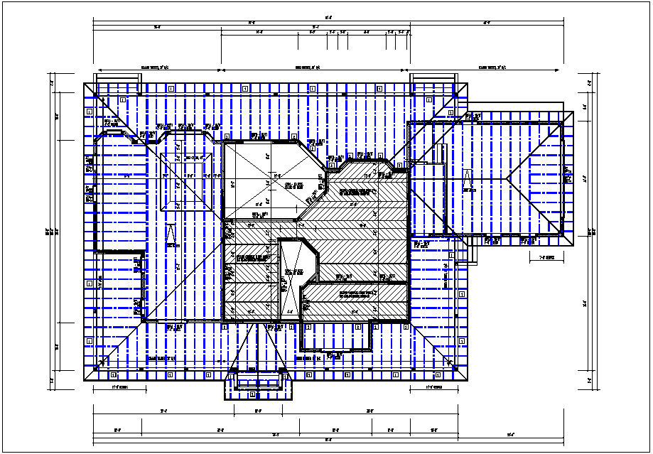 House roof plan with foundation plan layout view in detail dwg file