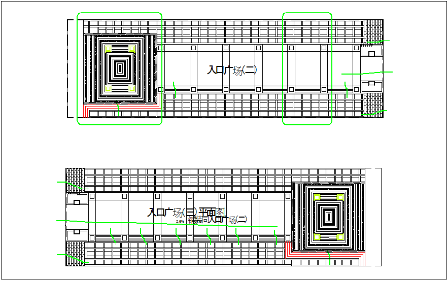 Construction view of pavement of plaza dwg file in plan view with pavement view with entrance square and area distribution and wall view.
