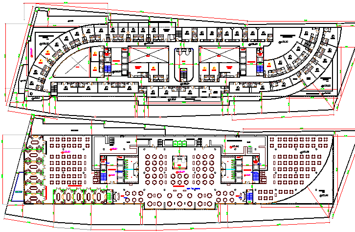 ground and first floor layout plan of baladiya hotel building dwg file