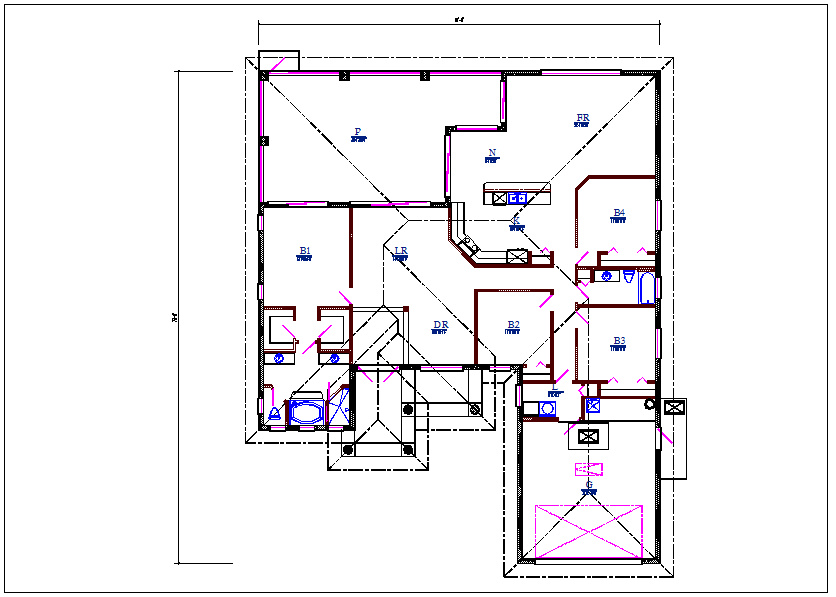 House plan layout detail dwg file, House plan and design plan layout view, drawing room, bedroom 1,2,3,4, entry passage, bathroom, etc