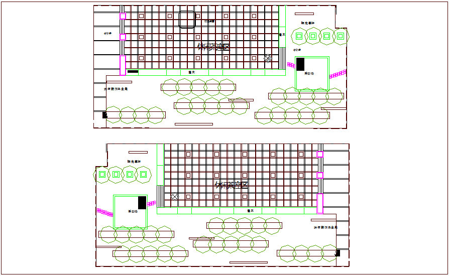 Casual cafe plan dwg file in plan view with main entrance and flooring view and dining area view with table and sun lawn view and view of and shrub area view with necessary detail.