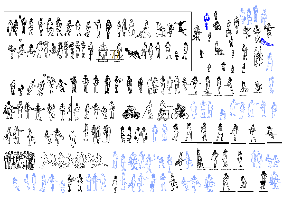 People Blocks dwg file. find here different pose of people elevation design with much more detailing in autocad file.