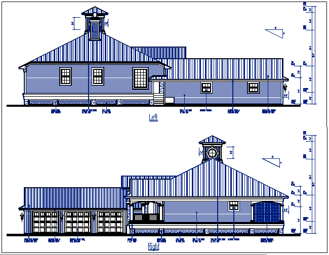 Bungalow elevation view detail dwg file, Residential house elevation view detail with specification detail, door window and garage door elevation view detail specification, right elevation and left elevation view detail, dimension detail etc